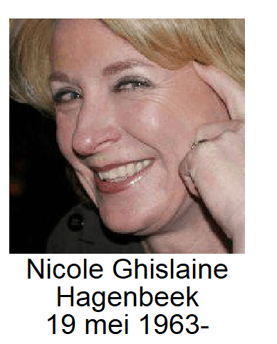 | XVs. | Ilse Mathilde Hagenbeek, dr. van Dolf Hagenbeek (XIVae) (docent Bedrijfscorrespondentie) en Mathilde Maria Kalksma (1e verkoopster), geb. te de Meern op 9 aug 1969, tr. (resp. 24 en 34 jaar oud) (1) te Driebergen op 27 mei 1994 met André Dieleman, geb. op 15 aug 1959. |
