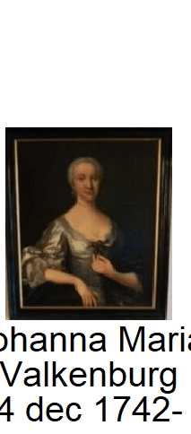 Johanna Maria Valkenburg2,3, dr. van Johannes Valkenburg en Margaretha Elisabeth Bouwman, ged. te Medemblik op 4 dec 1742, ovl. te Amsterdam. | ![]() |