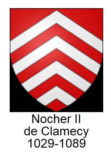 Nocher II de Clamecy, zn. van Nocher I de Clamecy (Seigneur de Clamecy, Ecuyer) en Aglaë de Corbigny, geb. in 1029, ovl. in 1089. | ![]() |