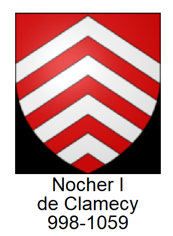 Nocher I de Clamecy, zn. van Herton de Clamecy, geb. te Clamecy [Frankrijk] in 998, Seigneur de Clamecy, Ecuyer, ovl. in 1059. | ![]() |